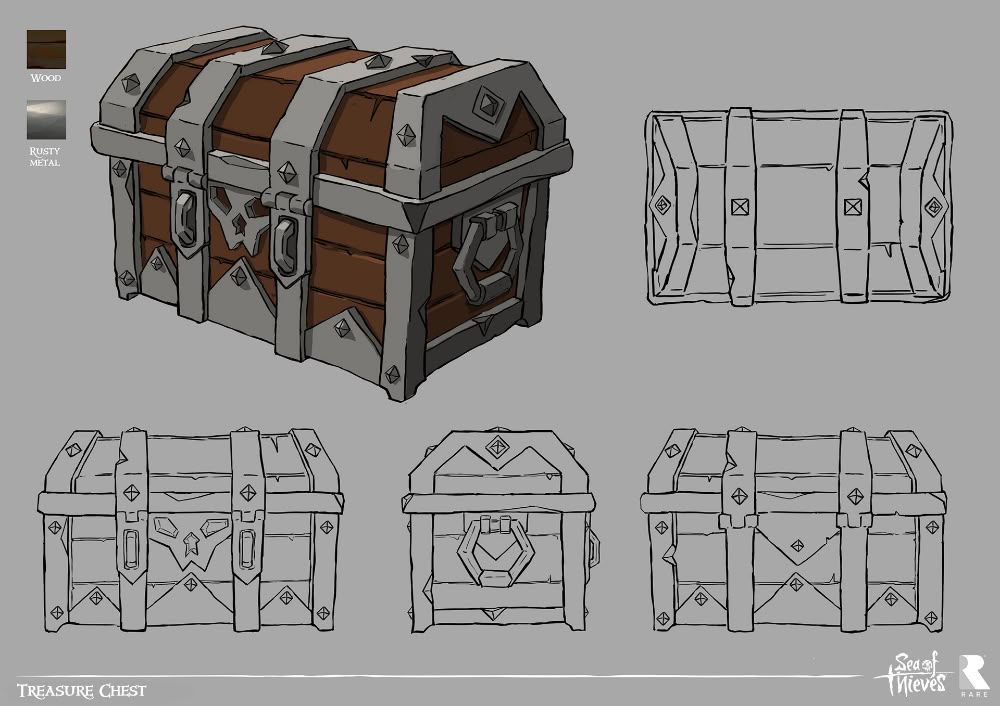 For my first 3D model to import into unreal engine, I chose a chest with which we could interact, but also with which I could add a little animation. The basic concept art is taken from the game Sea of Thieves.